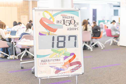同志社女子大学創立150周年の記念日である10月24日までの日数をカウントダウンで表示するボードを両キャンパスに設置しました。